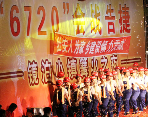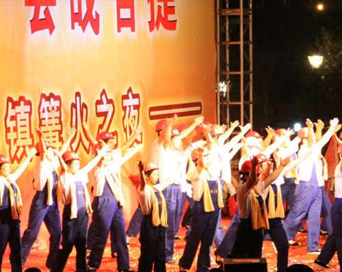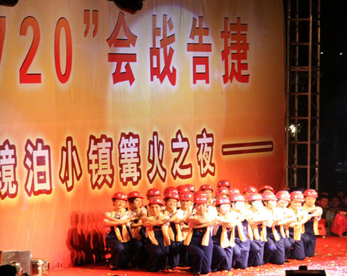 開業(yè)當晚,我公司代表施工企業(yè),為“鏡泊小鎮(zhèn)篝火之夜”文藝匯演奉獻了節(jié)目——舞蹈《咱們工人有力量》。