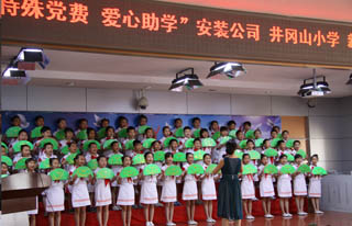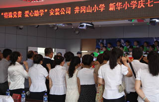 6月27日,公司在井岡山小學(xué)禮堂召開(kāi)開(kāi)慶祝建黨九十一周年暨先優(yōu)總結(jié)表彰大會(huì),會(huì)議總結(jié)了一年來(lái)公司的黨建工作,對(duì)喜迎"十八大"提出了新要求。大會(huì)表彰了2011-2012年度先進(jìn)支部和優(yōu)秀黨員。(新近落成的井岡山小學(xué)教學(xué)樓,是由公司承建的駐區(qū)小學(xué)中最好教學(xué)樓)。會(huì)后,張秋董事長(zhǎng)、黨委副書(shū)記原毅偉代表公司全體黨員,將捐資助學(xué)的特殊黨費(fèi)(壹萬(wàn)貳仟圓),轉(zhuǎn)交給井岡山和新華兩個(gè)小學(xué)的校長(zhǎng),以此表示企業(yè)黨組織對(duì)教育事業(yè)的關(guān)愛(ài)和責(zé)任。三個(gè)單位的黨員重溫了黨員誓詞。井岡山、新華兩個(gè)小學(xué)的師生與公司員工同臺(tái)表演,大唱紅歌,歡慶黨的九十一歲生日。